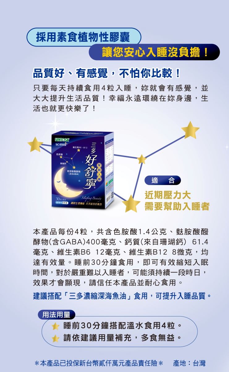 商品訊息簡述: 平均每盒最低只要375元起(含運)即可購得【三多】健康系列-好舒寧1盒/3盒/6盒(30顆/盒)?